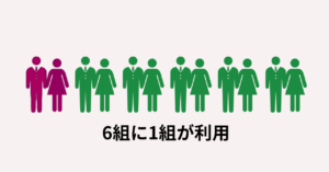 2021年結婚した人の中で、婚活サービスを通じて結婚したカップルは6組に1組いるわ!特に婚活サイトの利用が多いの。